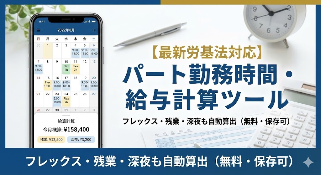 【最新労基法対応】パート勤務時間・給与計算ツール|フレックス・残業・深夜も自動算出(無料・保存可)
