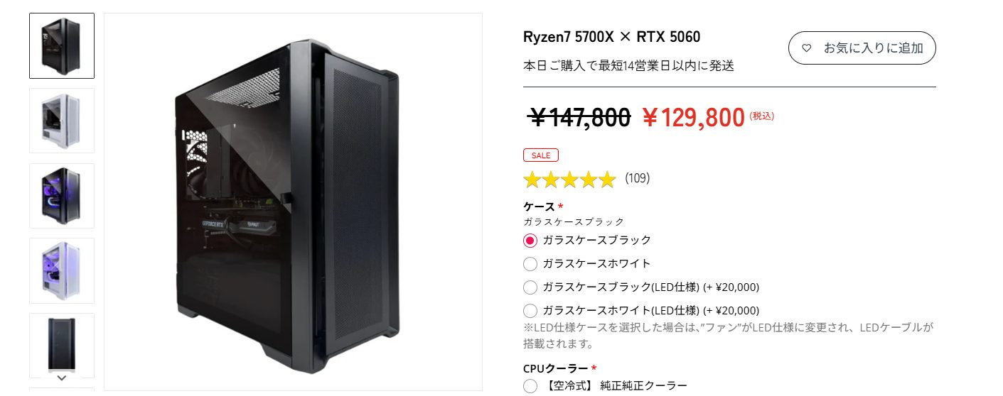 多くの人気タイトルに対応できるバランスの取れた構成で、コストもしっかり抑えられています 。 CPUにRyzen 7 5700Xを採用しているため、ゲームだけでなく軽い動画配信や編集作業にも対応可能 。まさに「無駄なく、けれど安定したパフォーマンスが欲しい」という方にぴったりの、使い勝手の良いゲーミングPCです 。