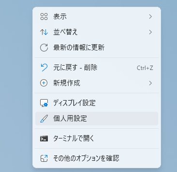 デスクトップ上の何もないところ(アイコンやタスクバーがない場所)で右クリックします。